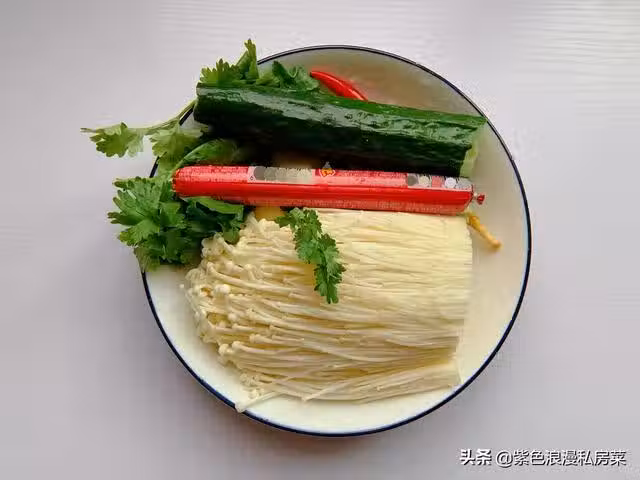 1.準備食材並洗凈,金針菇切去根部。