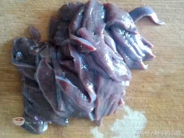 4、豬肝里加入適量鹽、少許生抽和白醋、擠點蔥薑汁,再加入適量澱粉,抓勻。