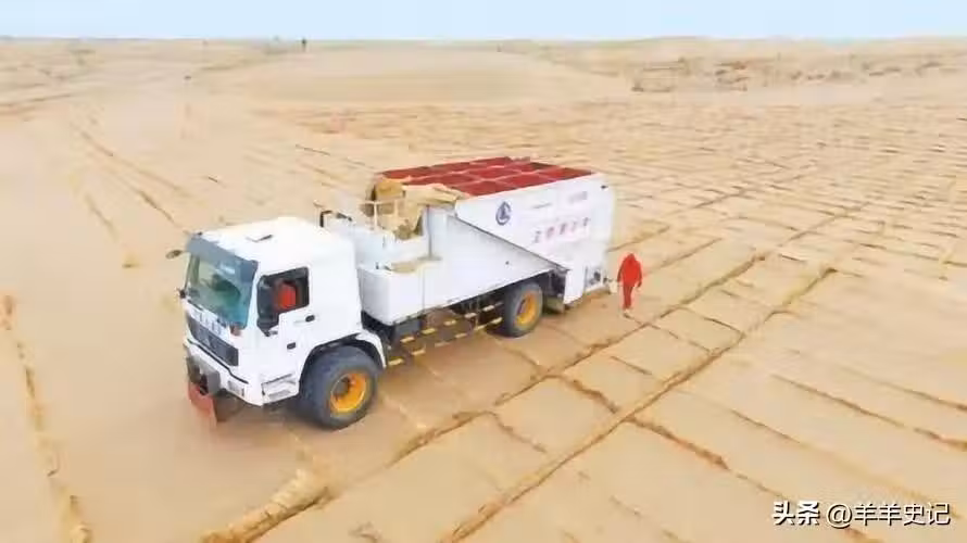 為了應對這些困難,科研人員研製出一種大型立體固沙工程車輛。