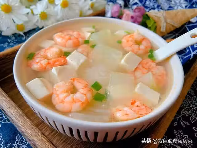 大家好!我是紫色浪漫,又到了分享美食的時間,最近比較忙,好久沒來更新美食啦!今天給大家帶來的還是減脂湯:冬瓜蝦仁豆腐湯,這道湯低脂低卡,高鈣高蛋白,味道也超棒,喝一口簡直要鮮掉眉毛了,這是我減脂期間常喝的湯,做法也超級簡單,想瘦身的朋友別錯過。