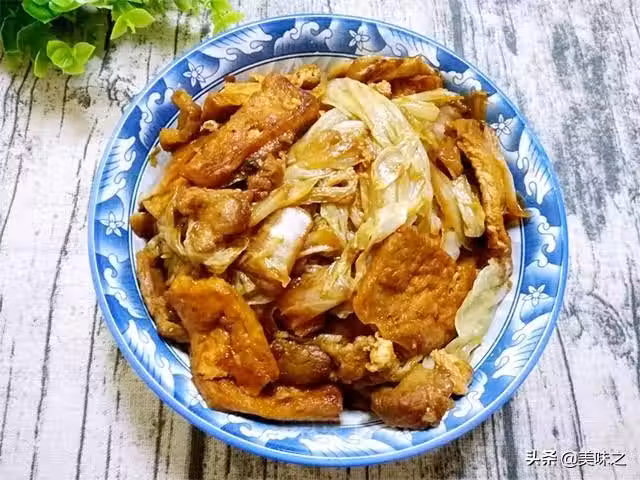 3、煎豆腐時準備白菜,幫葉分開,白菜幫斜切成片,葉撕成小塊。