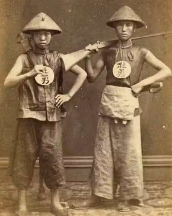 晚清老照片:這是晚清時期的清兵,畫面中的他們骨瘦如柴,看上去極度營養不良。清兵制服上寫著「壯勇」二字,著瘦弱的身軀和這兩個字顯得格格不入。