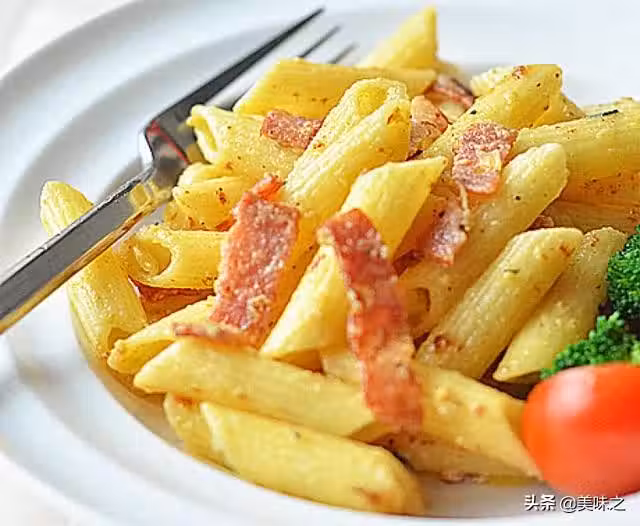 斜管面160g、培根3片、雞蛋黃1個、洋蔥20g、蒜10g、羅勒適量、卡夫芝士粉10g、淡奶油100ML、意面醬適量、鹽2茶匙、黑胡椒1茶匙、橄欖油25ML。
