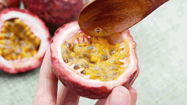 放在手裡掂一掂,比較一下哪個重哪個輕,重者的含糖量一定會大於輕者,因此,要選單個分量較重的百香果,其糖分足,口感絕對差不了。