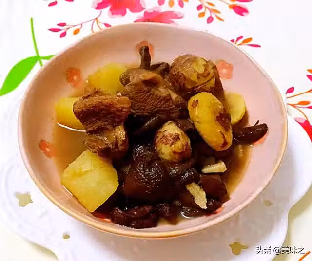 雞腿肉200克、紅松菇100克、板栗100克、土豆1個、蔥花10克、姜5克、八角1塊、花椒粒5克、醬油15ml、玉米油15ml、鹽4克、糖10克。