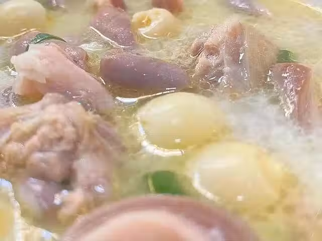 準備食材:豬肚,雞肉,蓮子,薑片,胡椒,蔥花。