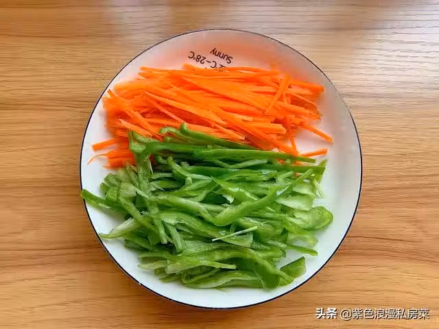 3.青椒切絲,胡蘿蔔切絲。