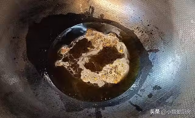 【步驟四】:花椒炸出香味,把花椒撈出來,開稍微大一點的火燒至六成熱,澆入準備好的調料裡邊,把調料的香味激發出來。