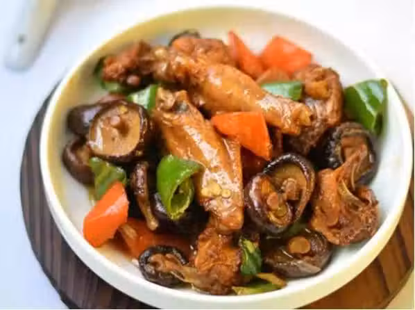 2.將蘑菇浸入溫水中,沖洗乾淨並除去。將胡蘿蔔,青椒切成薄片,將生薑切成薄片,然後將大蒜去皮。