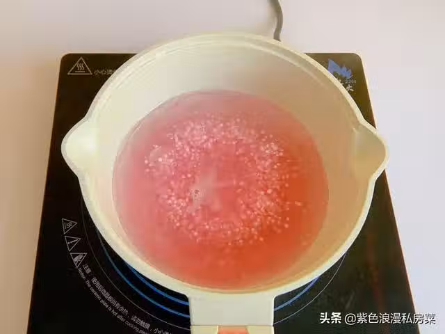 3.鍋中放清水,水開後放西米,期間要不停地用勺子攪拌一下,以免粘鍋底,西米大約煮10-15分鐘,沒有白芯的時候,就可以關火了,再蓋上鍋蓋燜幾分鐘。