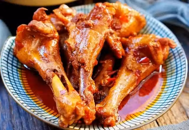 (1)將鴨腿洗凈浸泡片刻泡去血水,小蔥切段,生薑切片,蒜瓣切好備用。