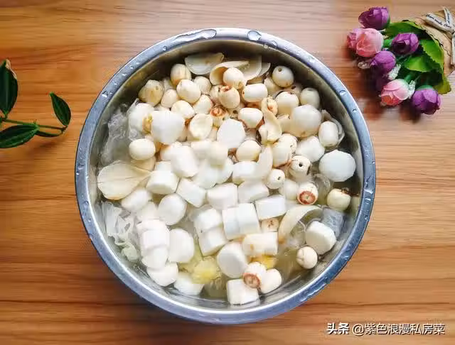 3.山藥切成小塊,蓮子,銀耳,百合清洗乾淨。