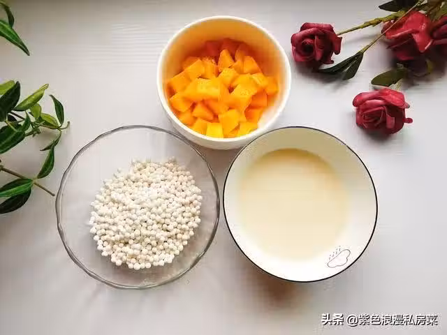 1.準備食材,芒果已經提前去皮切塊。