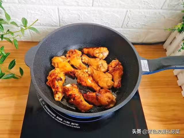 5.燜雞腿的過程中,可以給雞腿翻個面,方便煮熟,湯汁變濃,小雞腿燜熟,開大火收汁。