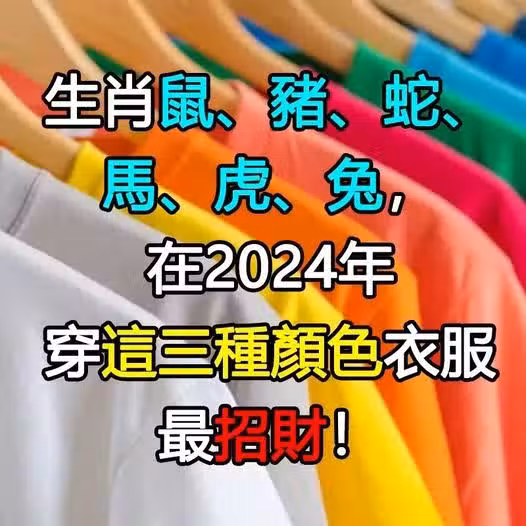 生肖屬 鼠、豬、蛇、馬、虎、兔,在2024年穿這三種顏色衣服最招財!