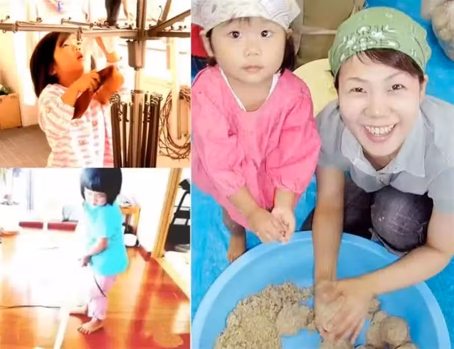 當別的同齡孩子還在撒嬌、睡懶覺,千惠就會給小花制定嚴格的作息時間表,她還開始教年僅4歲的小花做家務。 掃地、擦桌子、洗碗。甚至還教她如何製作味噌湯和使用小刀,讓她能夠獨自堅強地生活。