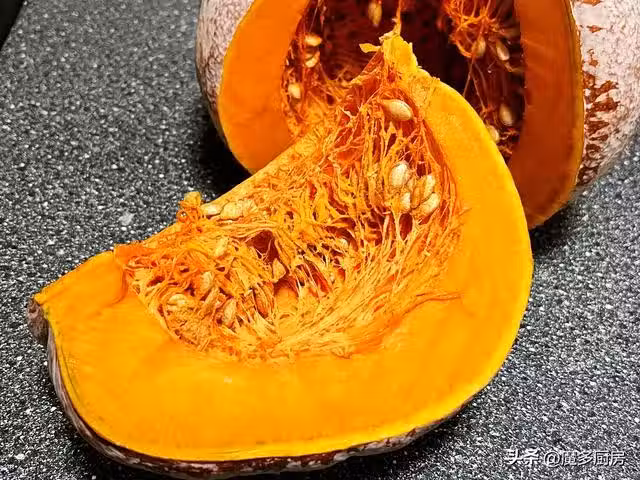 把南瓜去籽,切成小塊,放到蒸鍋上蒸熟,蒸熟後還需要散熱,等南瓜涼了再把南瓜果肉挖了來使用。下面配方里所用的南瓜泥,都是蒸熟後放涼再稱重的。