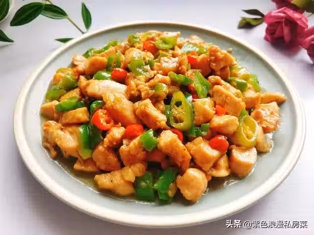 1.食材洗凈,雞胸肉切丁,放適量的鹽,一勺料酒,一勺生抽,適量老抽,一勺玉米澱粉,一勺食用油,抓拌均勻,腌10分鐘。