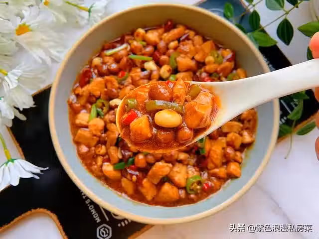 雞胸肉一塊,熟花生米適量,大蒜三瓣,青紅椒各一個,干辣椒適量,花椒適量,白糖一勺,料酒一勺,生抽三勺,香醋兩勺,老抽適量,食用油適量,食用鹽適量,胡椒粉雞精適量,香蔥一根,郫縣豆瓣醬一勺。