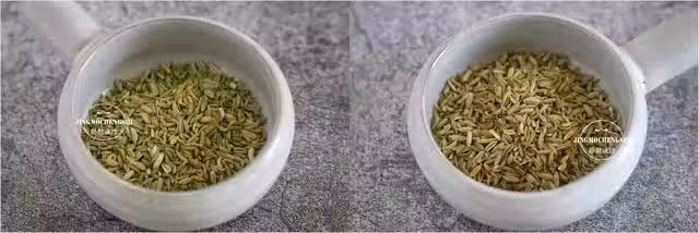 ①個體大小及色澤上有差異:小茴香個體較大,色澤偏綠,孜然個體較小,色澤偏黃。