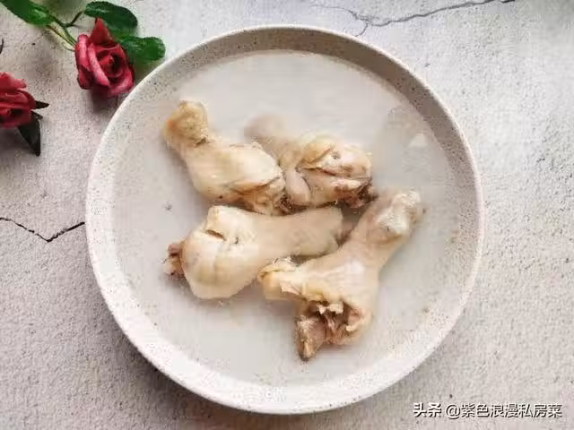 步驟四:提前準備好的冰水,將雞腿放入冰水中浸泡,這樣做,雞腿肉鮮嫩不柴。
