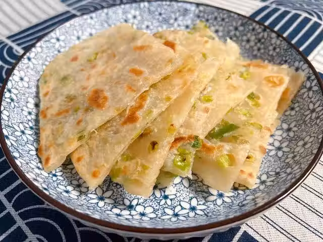 平時主食主要包括麵食和大米,大米偏寒,小麥則偏溫一點,所以消化功能弱的老人或者腸胃不好的人,建議多吃一些麵食。平時吃多了饅頭花捲,偶爾吃一頓蔥香濃郁的蔥花餅換換口味,很多人擔心蔥花餅是死面的,會不會比較硬,其實半燙麵蔥花餅,這是一種發麵餅,養胃效果要比死麵餅更好。