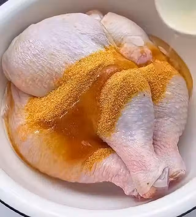 步驟二:腌制好以後,鍋中水開,把雞腿上鍋蒸30分鐘。