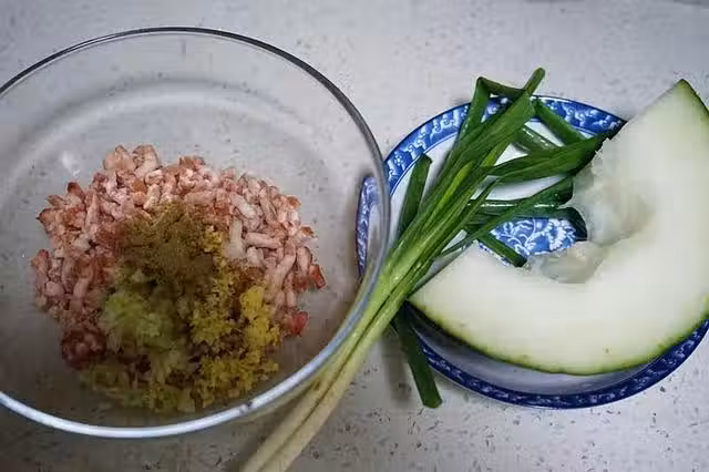 2、400克左右的冬瓜去皮切薄片,冬瓜片有一定厚度別太薄,不然就融化在湯里了。