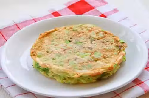 3. 不粘鍋燒熱後,滴入少許油,倒入麵粉糊,小火慢煎,蓋上鍋蓋稍微燜一下,一面煎熟後,反面煎熟即可。