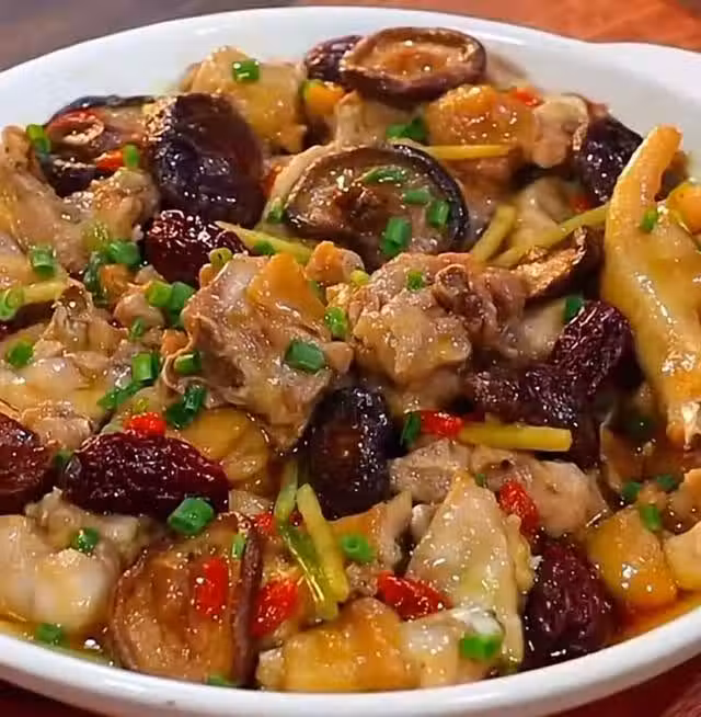 食材準備:雞肉,蔥,姜,料酒,鹽,白糖,生抽,蚝油,澱粉,香菇,枸杞,紅棗等。