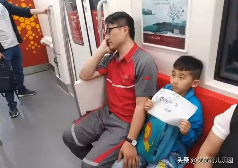 快遞員爸爸「累到在捷運上睡著」天使兒子「舉手寫紙條護航」乘客一看全淚目:可憐天下父母心!