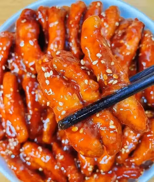 步驟四:將料汁倒入鍋中煮至濃稠冒泡,再將炸好的裡脊條倒入鍋中,翻炒均勻,撒點白芝麻即可出鍋。酸甜可口的糖醋裡脊,別說是小孩子了,大人們也都是很愛吃呢。