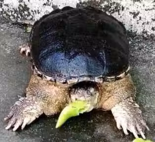 飼主也被這一幕嚇了一跳,趕緊將鱷龜放回水中,希望它能恢復正常。