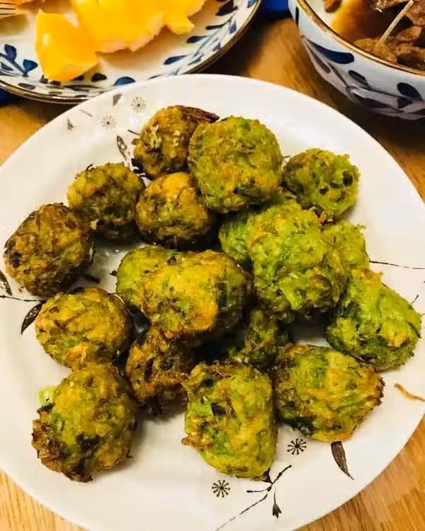 7.用勺子將拌好的蘿蔔泥摔出大小適中的丸子