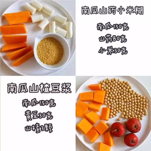 南瓜150克;山藥80克;小米30克;純凈水600克