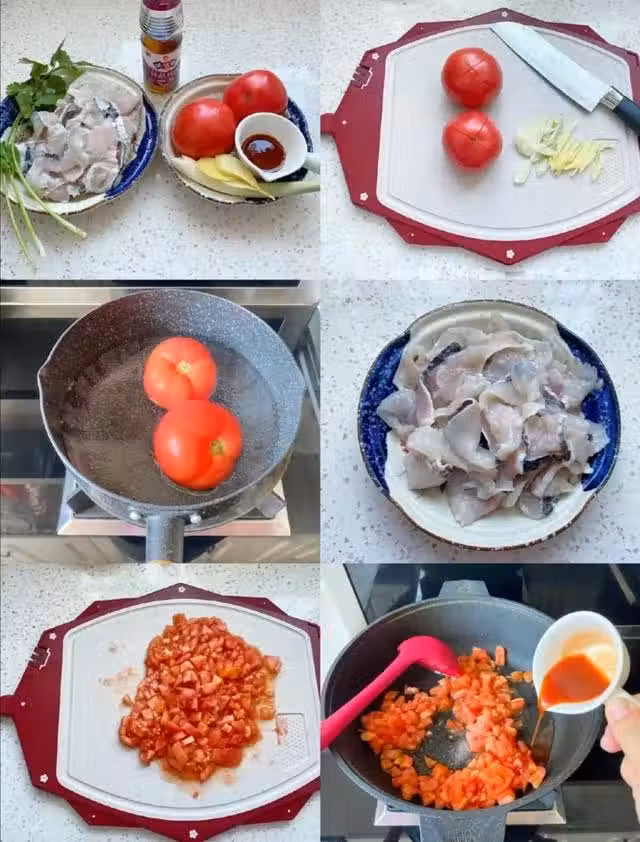1準備好所用的食材,西紅柿洗乾淨,黑魚片我直接買切好的掛漿黑魚片,省事方便。