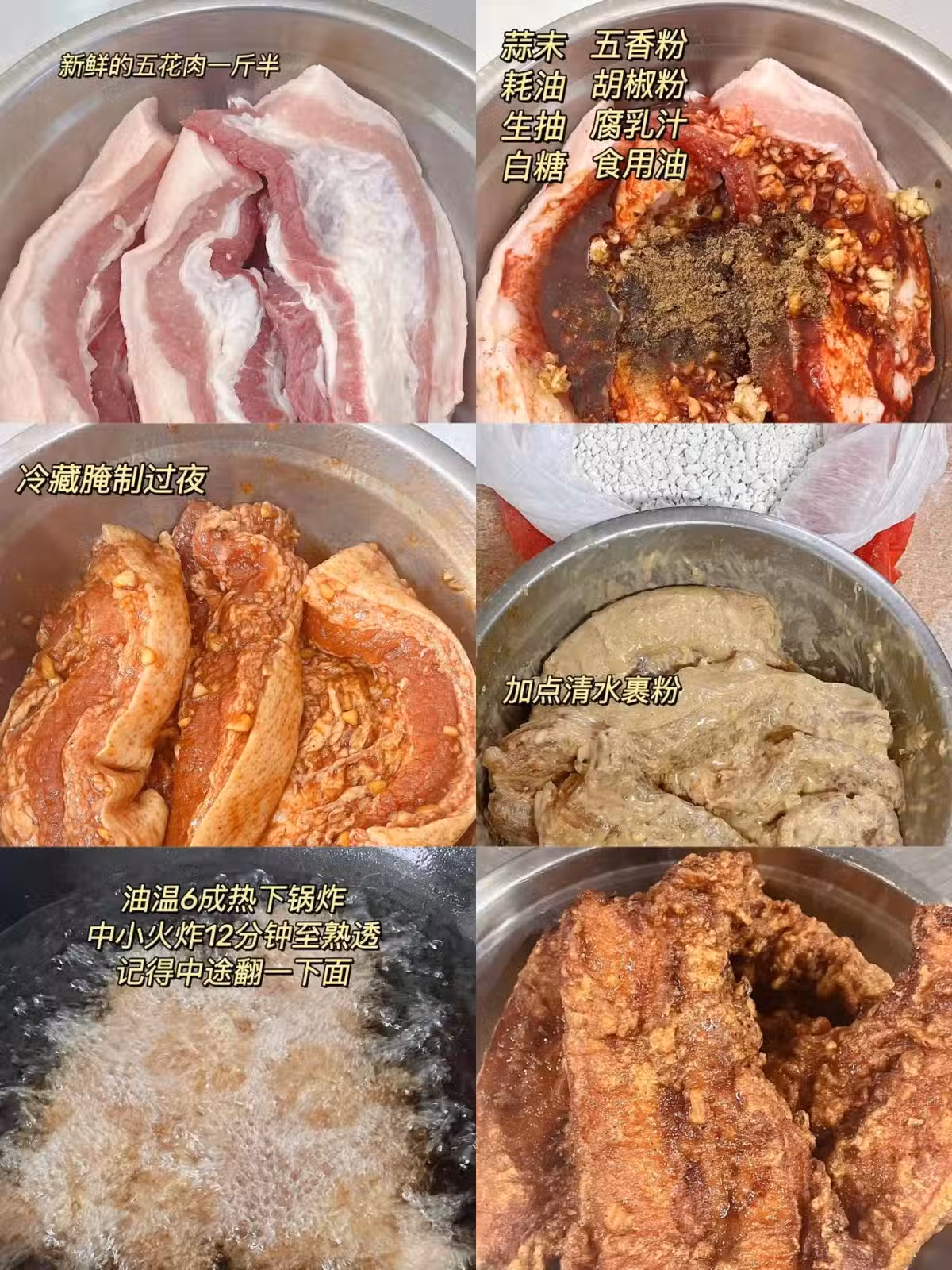 1️⃣豬肉不用切,用食用油、南乳汁、五香粉、胡椒粉、耗油、生抽、白糖腌制過夜