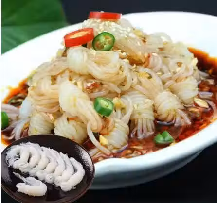 6.將魔芋絲放在盤中木耳絲的上面。
