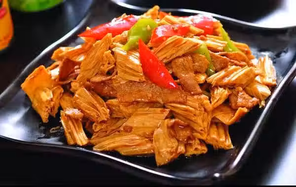 材料:腐竹、青椒、生薑、大蒜、蔥