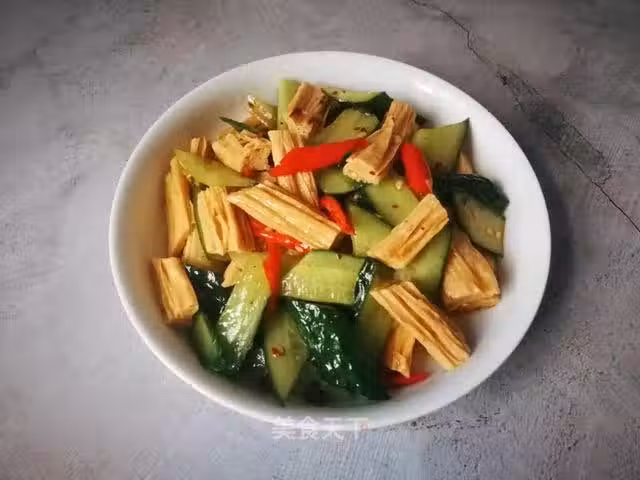 主料:黃瓜一根腐竹適量小米椒適量