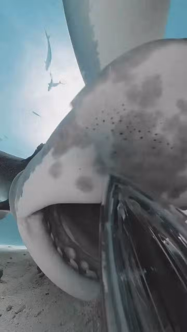 攝像機就這樣進到這條鯊魚的嘴巴里去了!