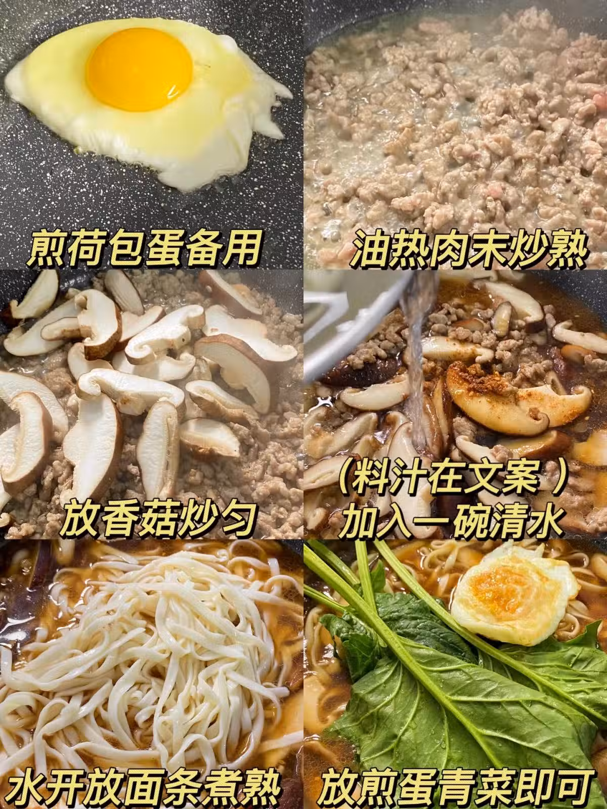 🌶️食材:手擀麵、香菇、肉末、雞蛋