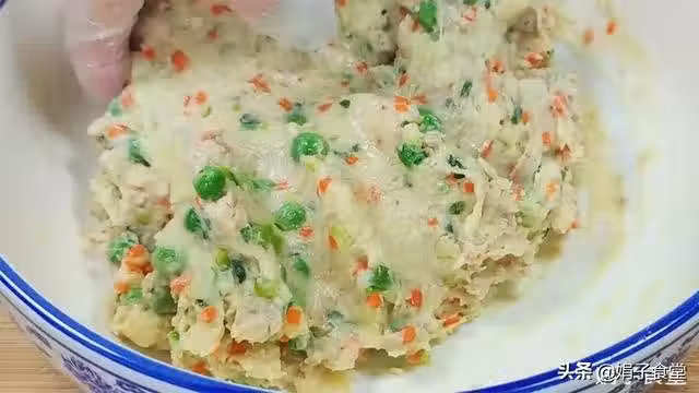 15、取適量土豆泥,先團成圓球,然後再用手輕輕地按扁,這樣一個土豆餅的生坯就做好了。土豆餅不要太厚,也不要太大,薄一點比較容易熟。