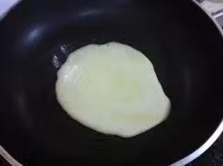 4. 加入2大匙麵糊在鍋內,利用湯匙撥開麵糊。