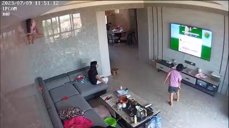 孩子在客廳看電視!媽媽突然發現「怎麼少一個人」 抬頭一看「差點嚇到昏倒」:怎麼上去的啦