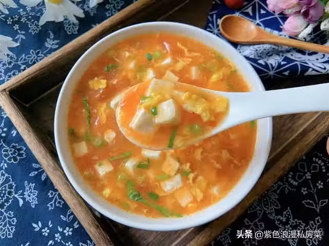 酸溜溜地特別開胃,不僅孩子喜歡,我也喜歡,有時候我的早餐就是一碗這樣的番茄雞蛋豆腐羹,番茄裡面含有豐富的維生素C,多吃可以美容養顏,美白皮膚,而豆腐,屬於高蛋白低脂肪的食物,還特容易消化,裡面加了雞蛋,對於瘦身期的我來說,真的是一份特別美味的低脂餐,一碗這樣的羹,讓我吃得飽飽噠,營養也足足噠!現在把做法分享給大家,喜歡的朋友不妨做起來!