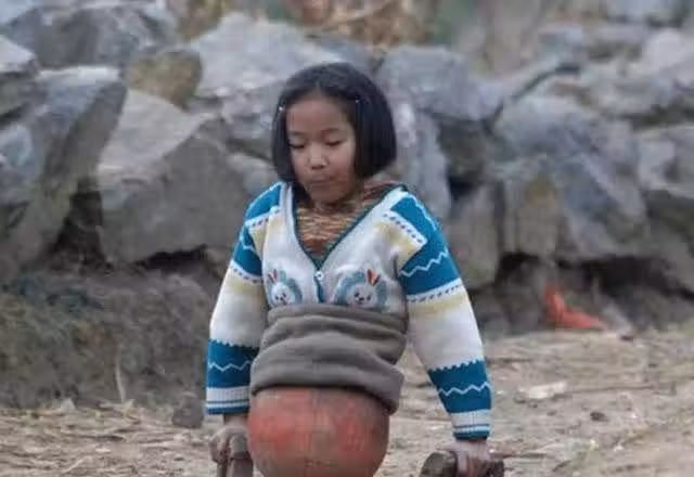 她下不了床,只能透過床邊的窗戶看看外面。有時候會村裡的孩子隔著窗戶喊她出來一起玩,她就低著頭小聲地回答:「我腿沒了,你們自己玩吧。」