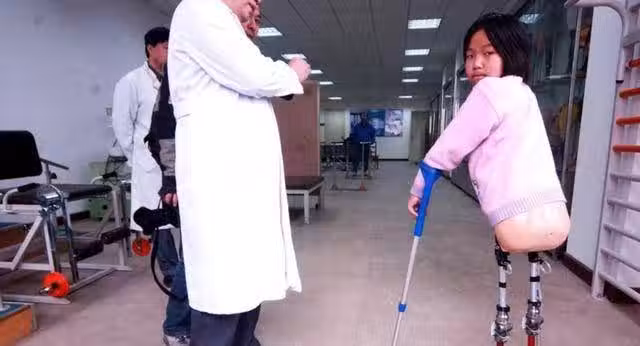 2007年2月,父母帶著小紅艷到北京的醫院做體檢,為安裝假肢做準備。一個多月後,專家將假肢調試成功後,小紅艷也終於戴上了人生第一副假肢。