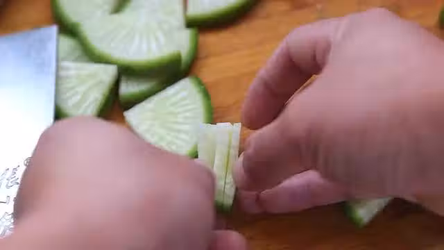 第四步:全部切好後放入30克白糖充分攪拌均勻,蓋上保鮮膜,腌制出蘿蔔水,通過腌出蘿蔔水以後,蘿蔔吃起來會更加爽脆。