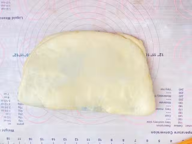 8、對摺後,繼續用擀麵杖擀開,儘量擀薄些